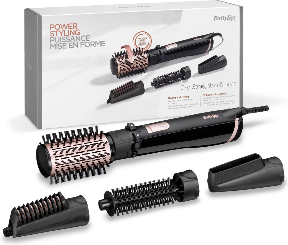 Ontdek de veelzijdigheid van de BaByliss Dry, Straighten & Style AS200E föhnborstel en creëer moeiteloos professionele kapsels vanuit het comfort van je eigen huis. Of je nu gaat voor een strakke, glanzende look, volumineuze krullen of een natuurlijke stijl – deze multifunctionele tool biedt alles wat je nodig hebt om elk gewenst resultaat te bereiken.