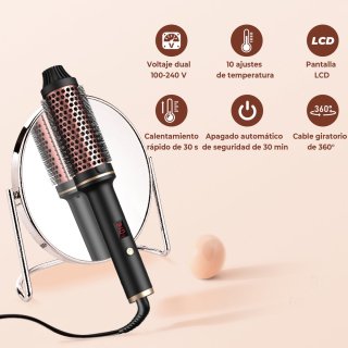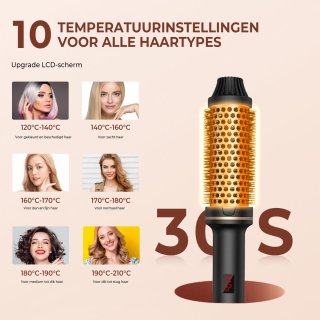- Keramische borstelplaat: zorgt voor gelijkmatige warmteverdeling en beschermt het haar tegen hotspots.
